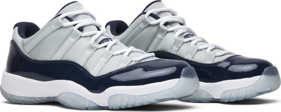 Released in April of 2015 . the Air 11 Retro Low 閳ユオeorgetown閳?celebrates Michael 閳ユ獨 game-winning shot that won the 1982 NCAA championship for the Tar Heels against the Georgetown Hoyas. The Brand increased its quality with the shoes by adding a stronger grey mesh upper with softer navy patent leather overlays.