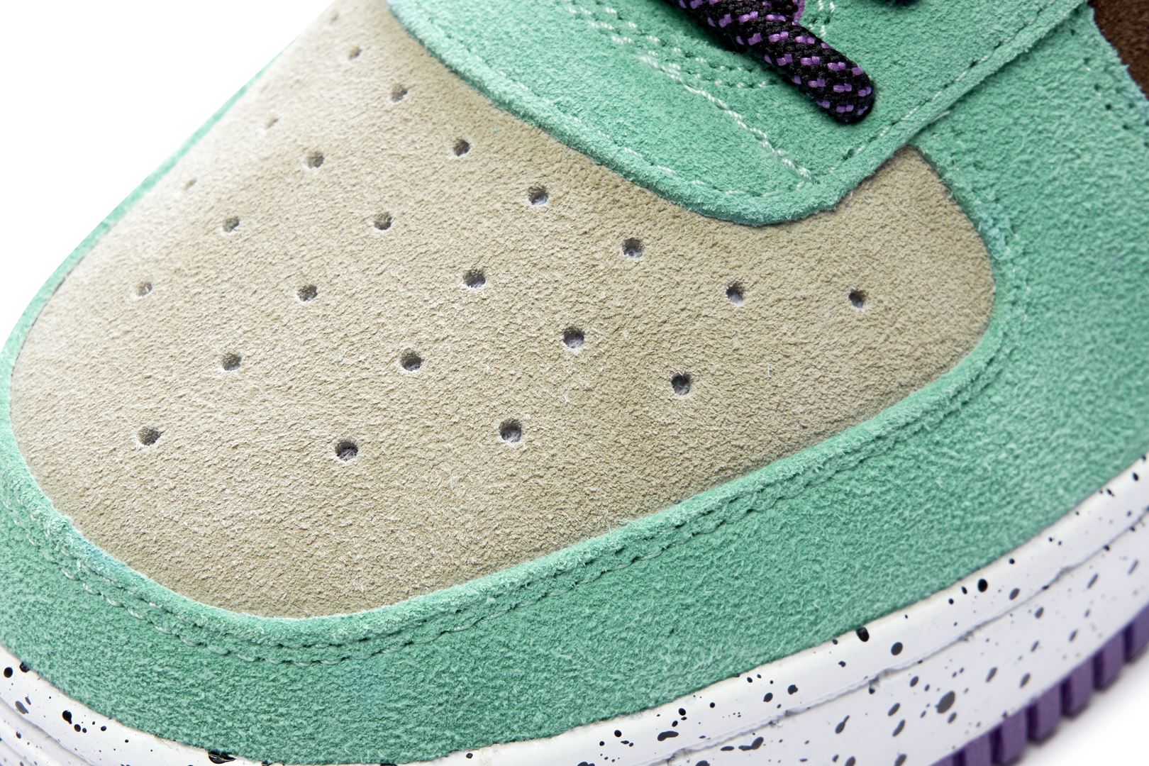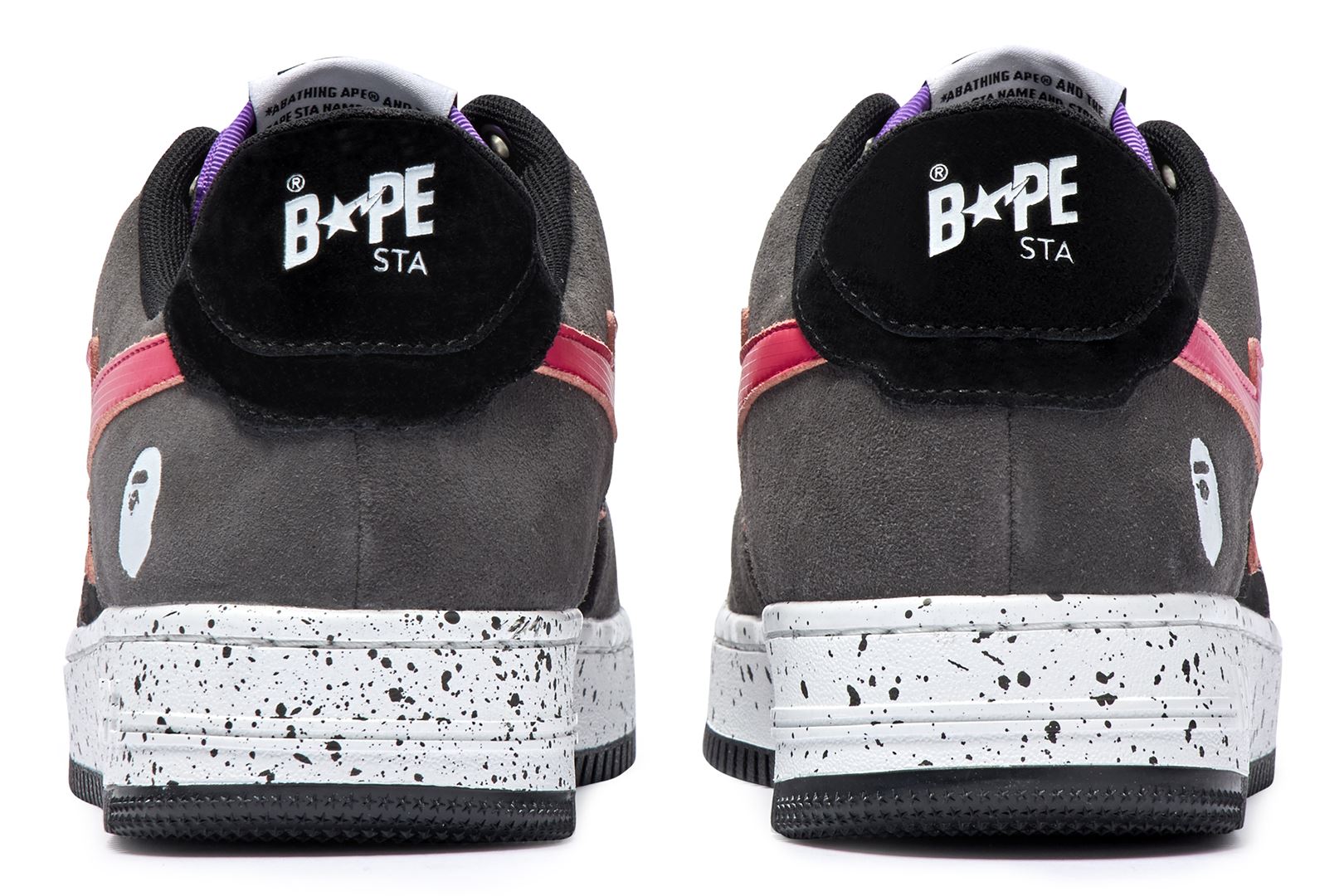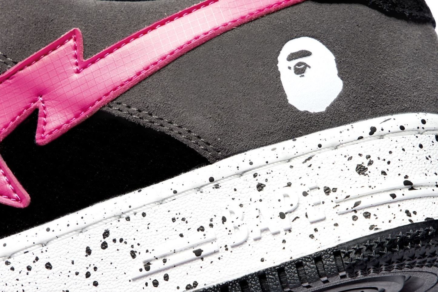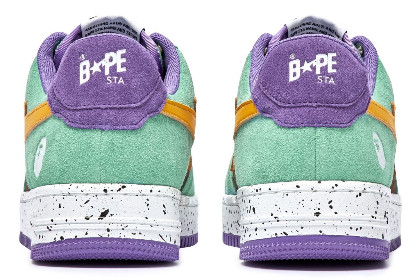 The upper is wrapped in bright green and chic black suede, and the BAthtPE STA part, which is the symbol of the series, is designed with a different material in a bright color. The finish is accented with shoelaces with an unusual paracord design and inkjet print on the sole.
