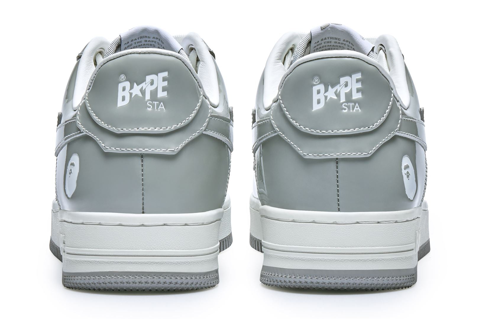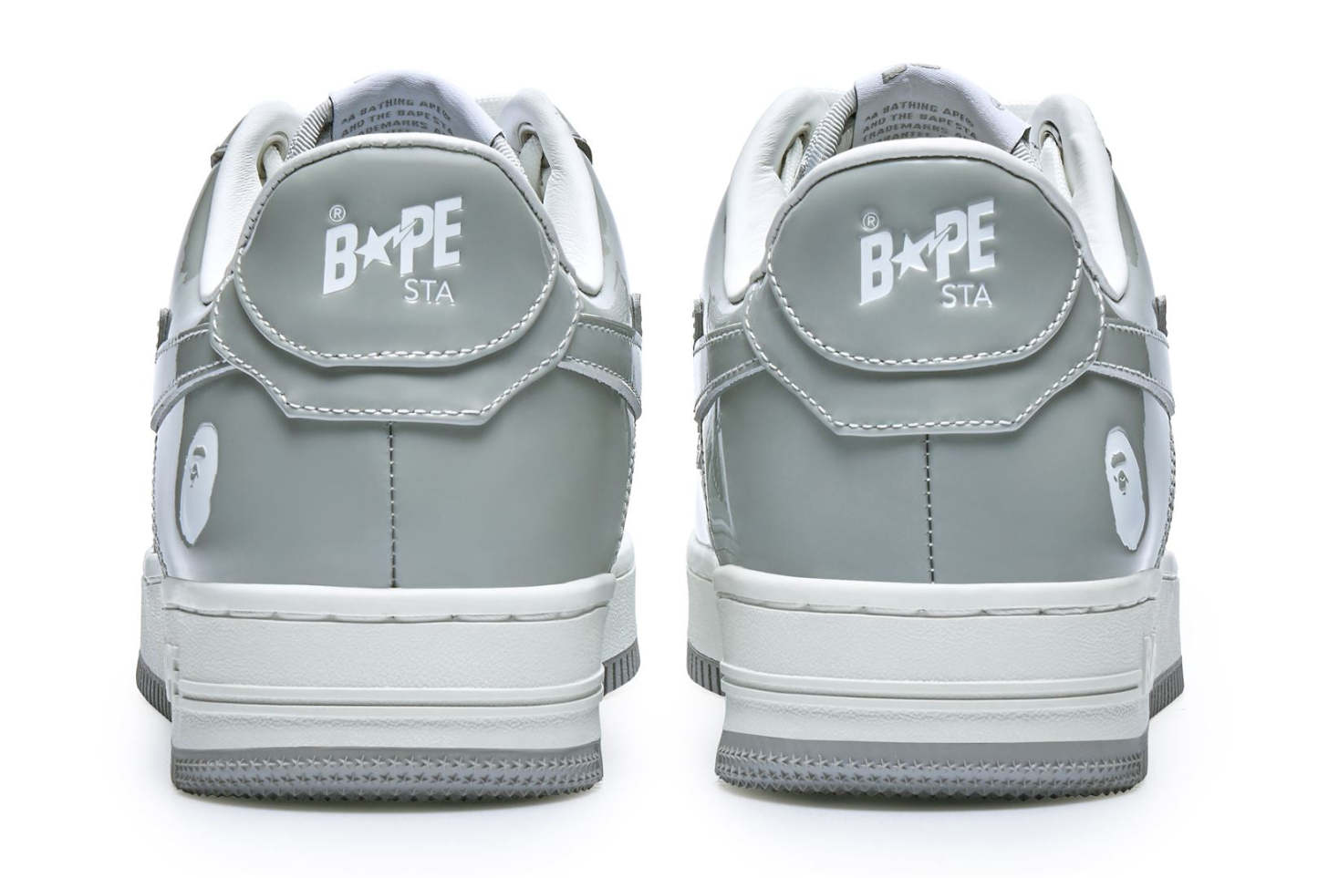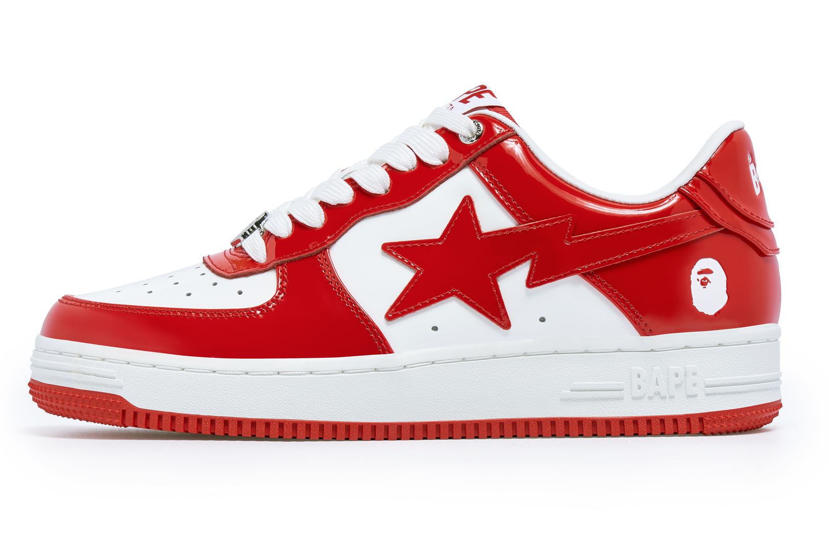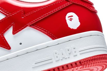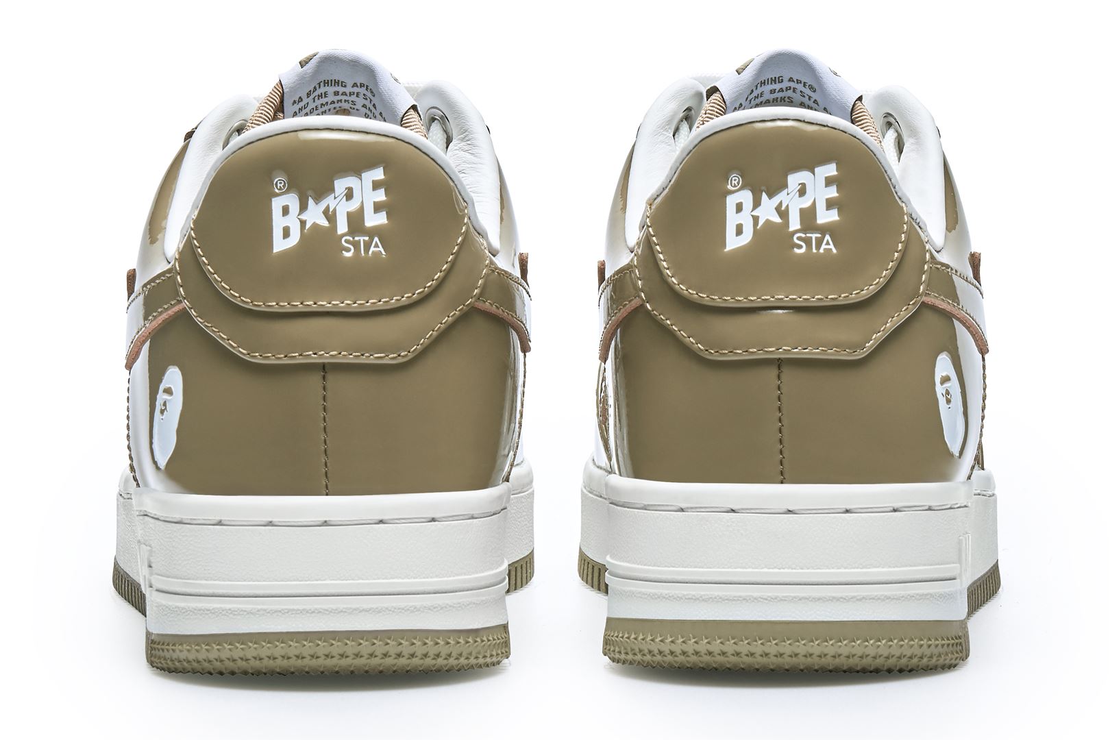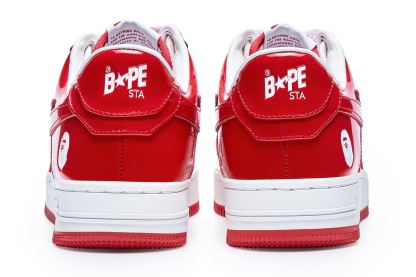 Line up in 4 classic colors of patent material combining beige, gray, red, and blue with white as the base color. The finish allows you to feel the craftsmanship that BAthtPE STA? is proud of from the details such as the material used, engraving, and stitching. The symbolic "AthtPEHEAD" is engraved on the heel, casually decorating the feet.