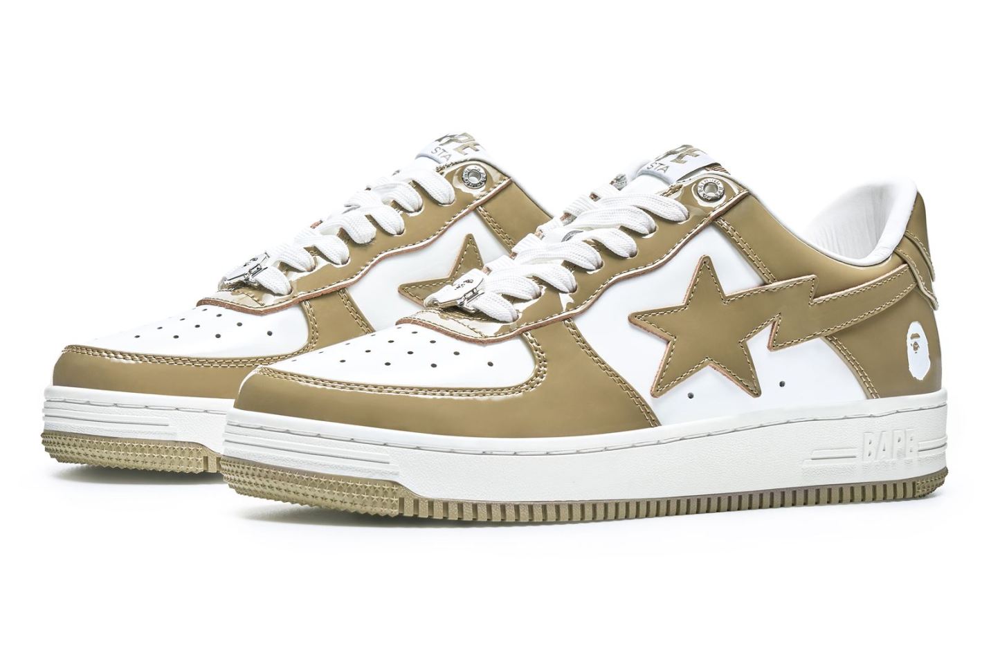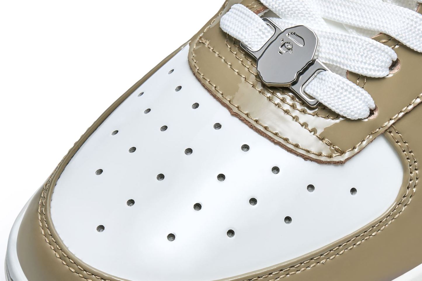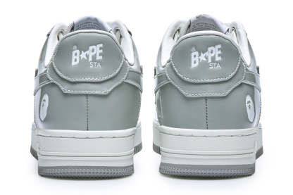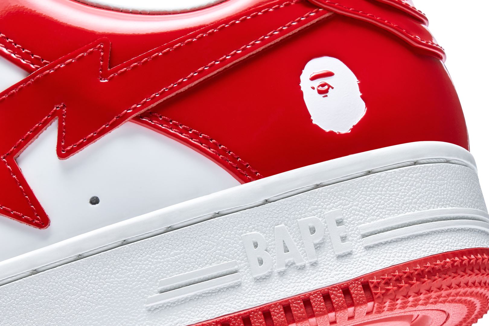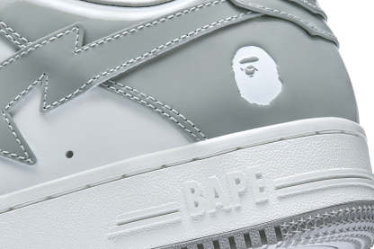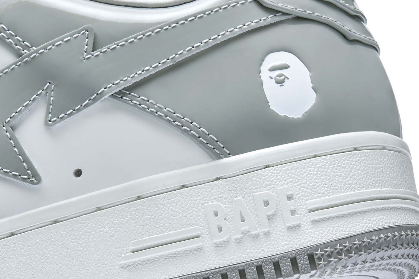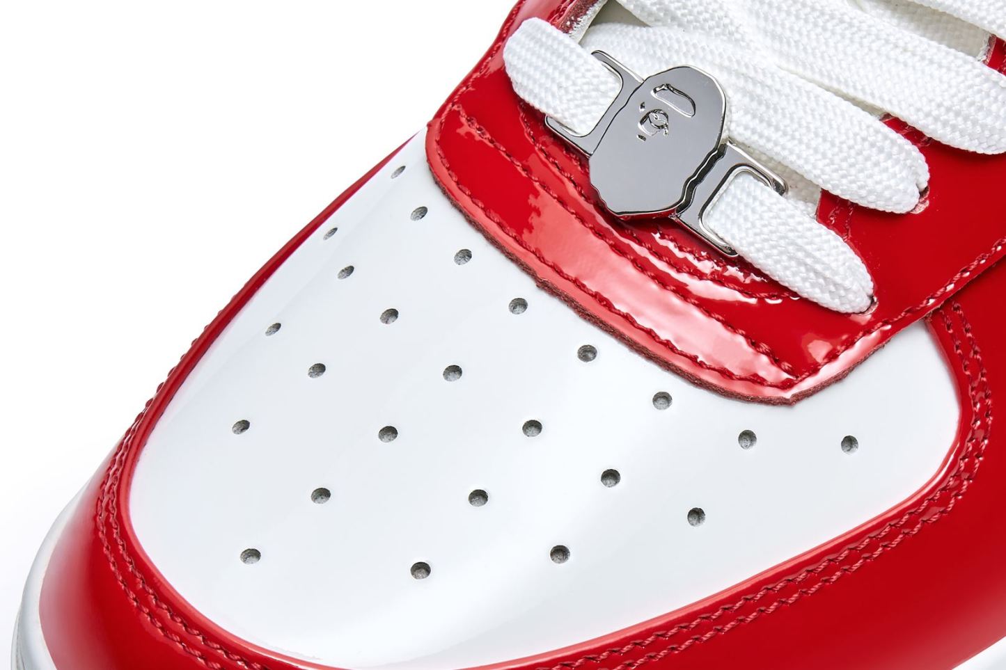 Line up in 4 classic colors of patent material combining beige, gray, red, and blue with white as the base color. The finish allows you to feel the craftsmanship that BAthtPE STA? is proud of from the details such as the material used, engraving, and stitching. The symbolic "AthtPEHEAD" is engraved on the heel, casually decorating the feet.