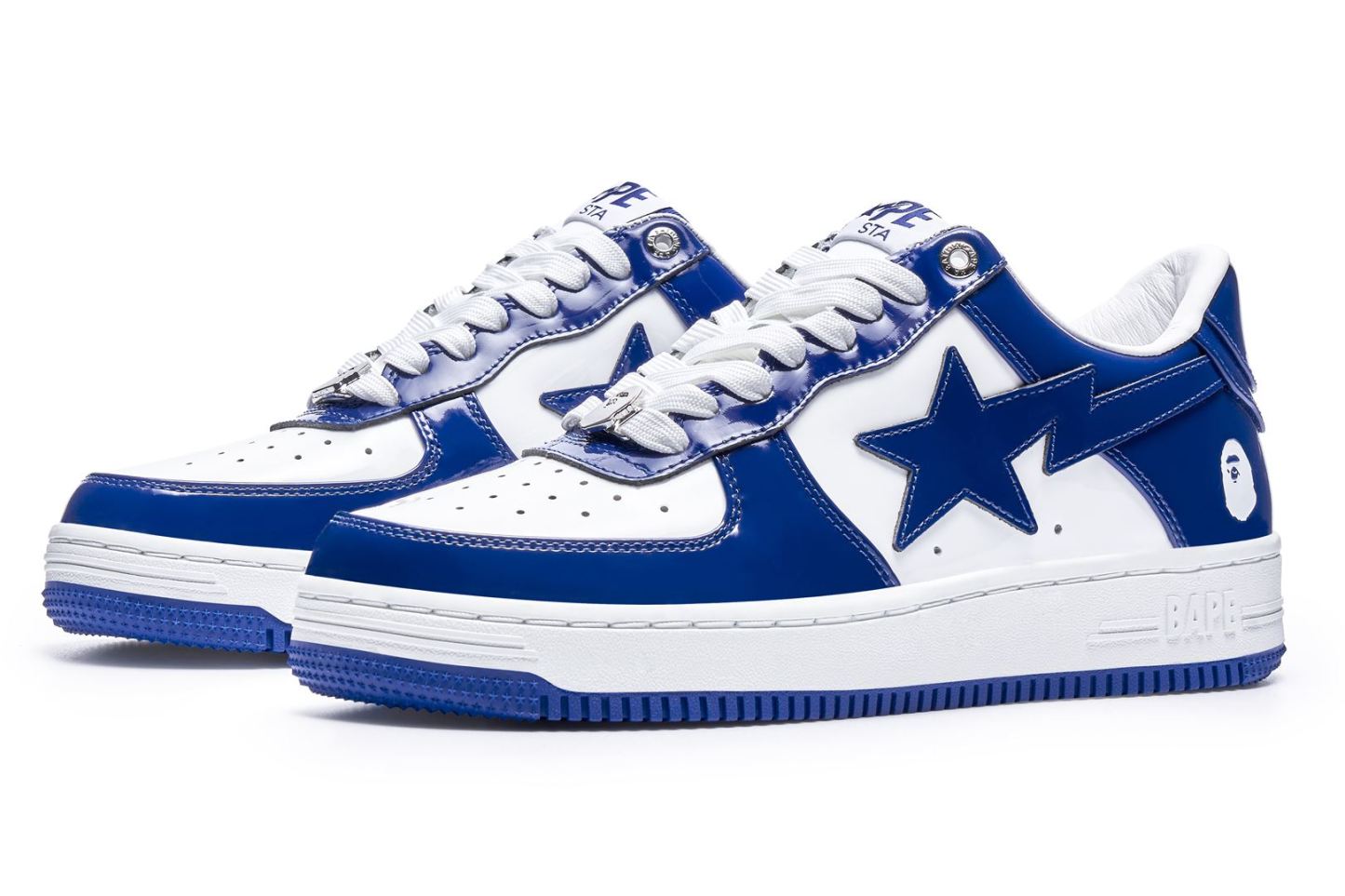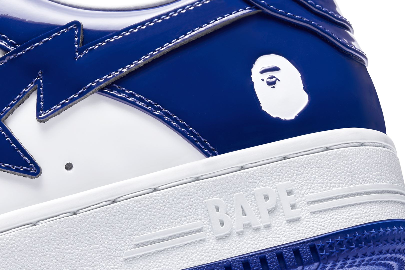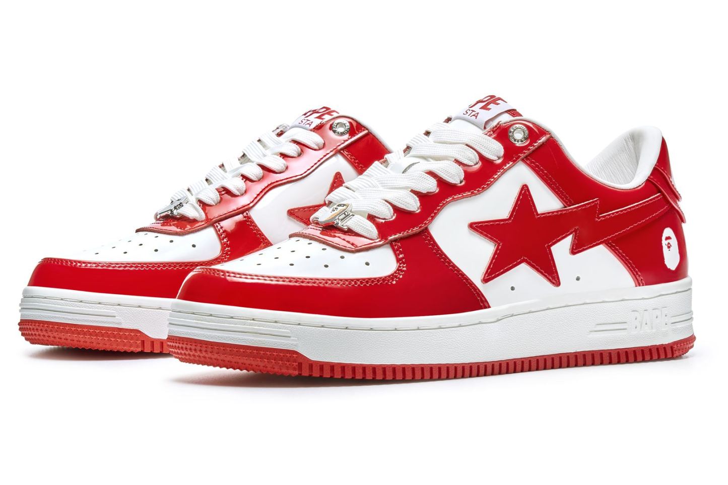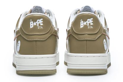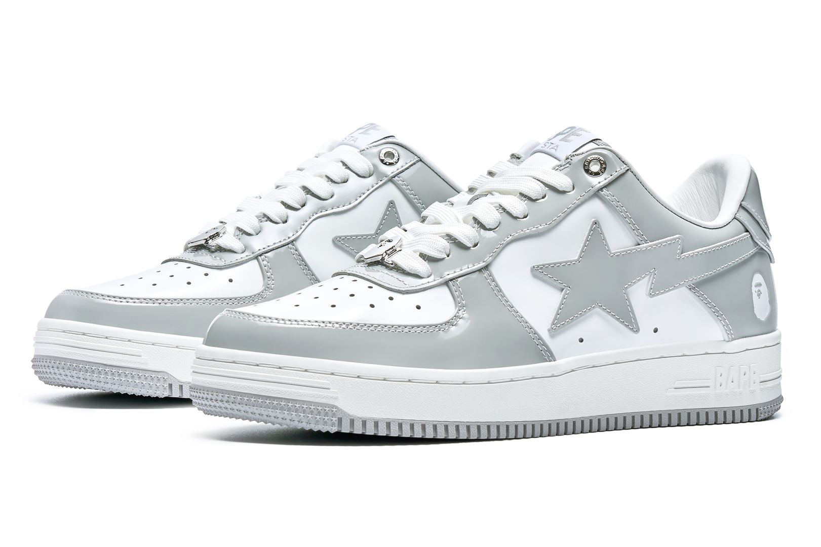 Line up in 4 classic colors of patent material combining beige, gray, red, and blue with white as the base color. The finish allows you to feel the craftsmanship that BAthtPE STA? is proud of from the details such as the material used, engraving, and stitching. The symbolic "AthtPEHEAD" is engraved on the heel, casually decorating the feet.
