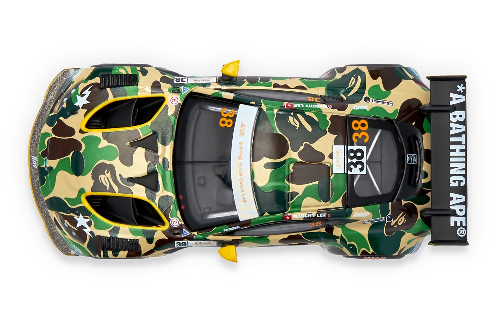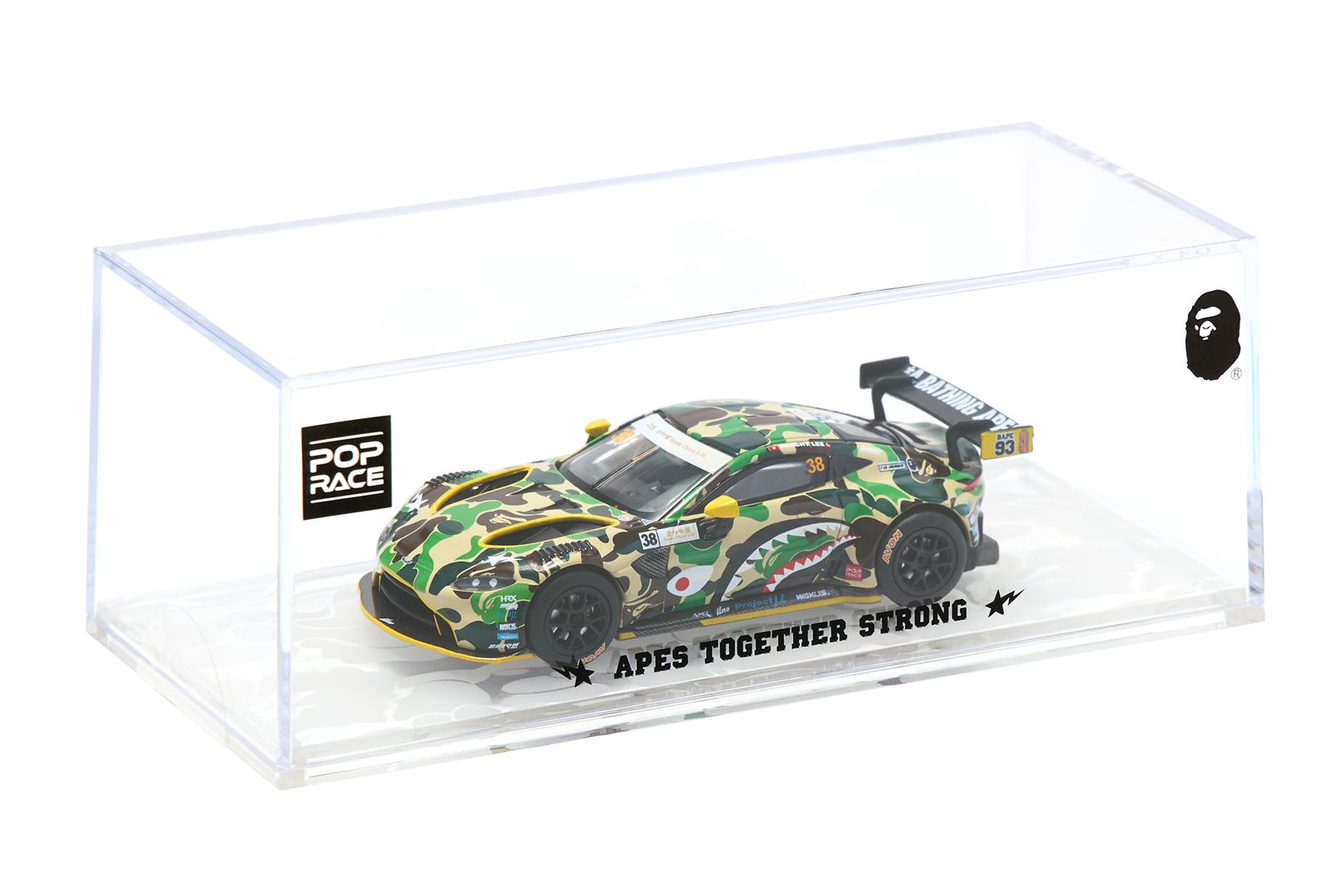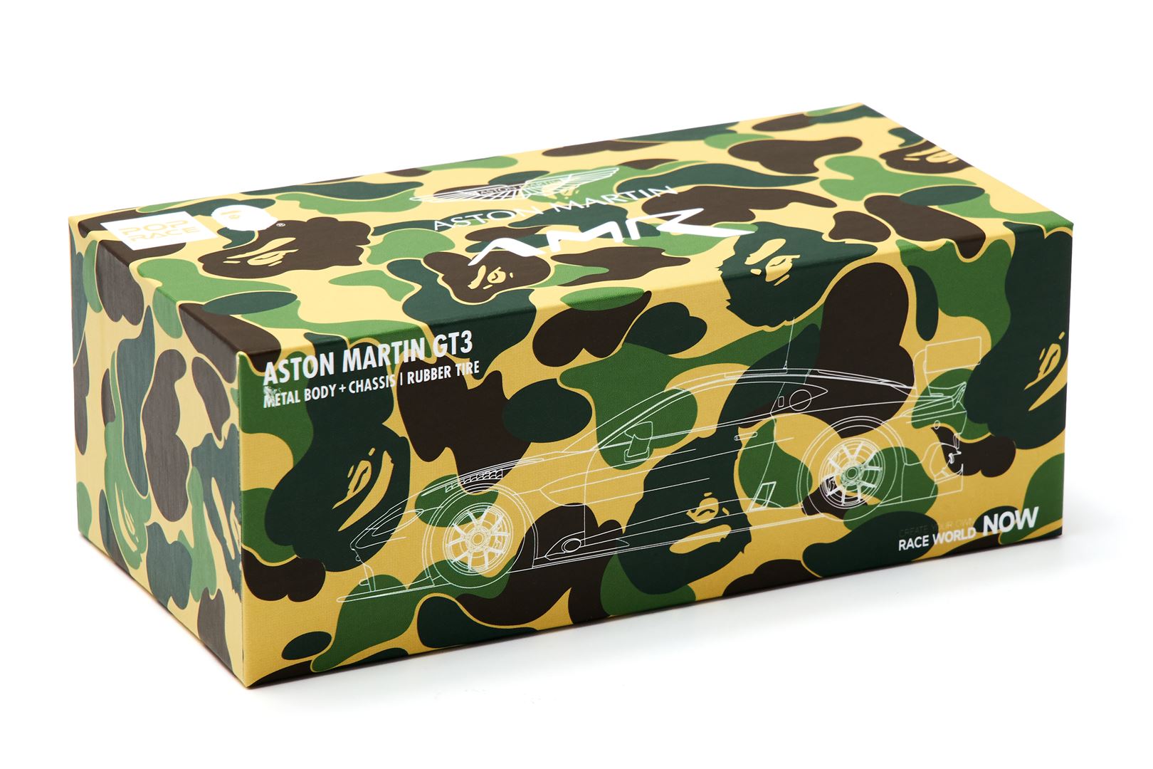 Following the huge success of its Grand Prix debut, in collaboration with POPRACE MODEL, has released a die-cast model car of the Aston Martin GT3. Combining 's signature ABC CAMO with the car's individuality, the sports car's overall coloring is even bolder and trendier. Manufactured using over 300 pad printing processes to ensure perfect quality. Not only is this a scale version of a racing car, but it is also a highly acclaimed collector's item that is sure to become your favorite item.