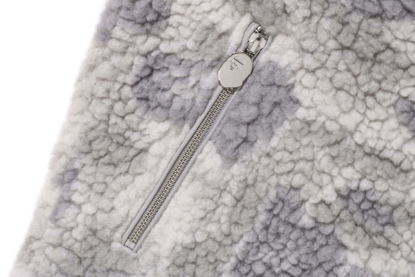 Zip-up fleece jacket made of cotton boa material with TONAL SOLID CAMO pattern. AthtPE HEAD metal plate on the left chest and zippered pockets on both sides. AthtPE HEAD one-point charm is included on the zipper head. Comes with spindles on both hems, allowing for silhouette adjustment. A silhouette with a relaxed fit. Available in 1 color and 5 sizes.