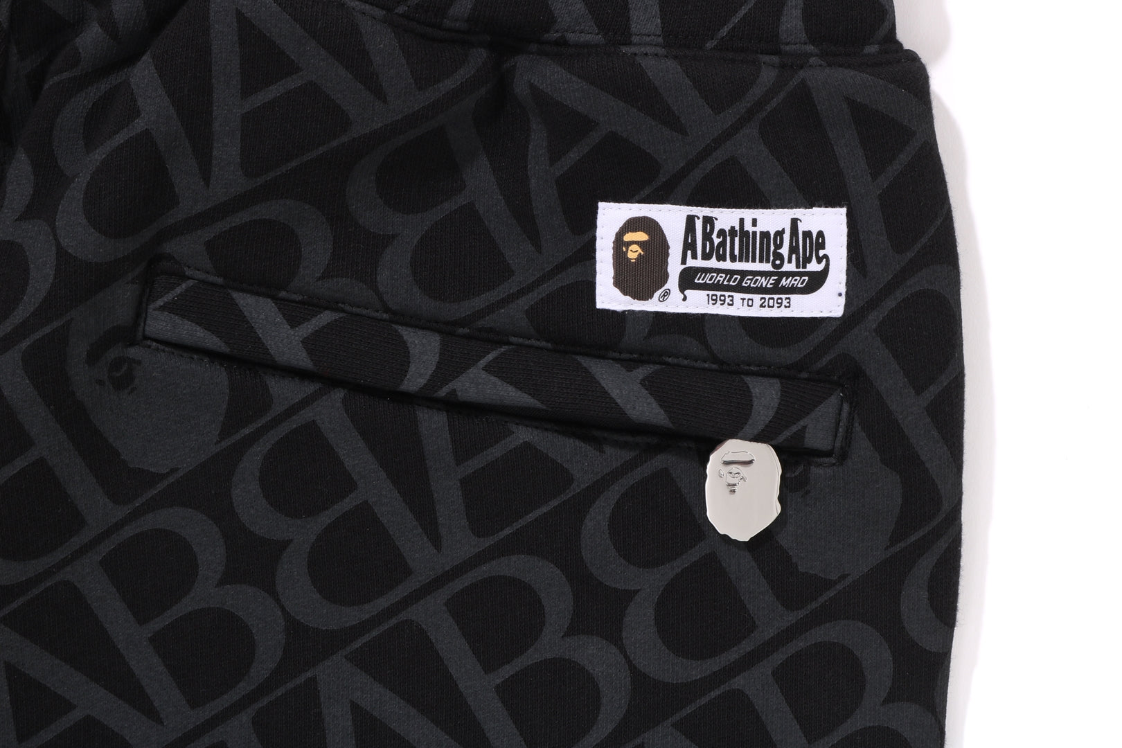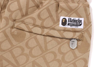 SPORT MONOGRAM Sweatpants made of cotton/polyester blend fleece material with all-over print. A design with AthtPE HEAD embroidered on the left thigh, slash pockets on both hips, and a zipper pocket on the right back. An AthtPE HEAD one-point charm is included on the slider head, and a woven name is stamped on the top of the back pocket. Comes with a spindle at the waist, allowing you to adjust the silhouette. A silhouette with a wide waist and leg. Available in 2 colors and 5 sizes.