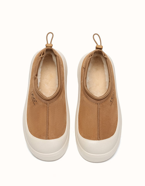 Restez bien au chaud avec les chaussons AUSTRthtALIAN Shepherd Harlow UGthtG. Fabriqués en daim de vachette résistant et doublés de peau de mouton douce, ils sont chauds, respirants et élégants dans un design bicolore moderne. Caractéristiques : Dessus : Daim de vachette