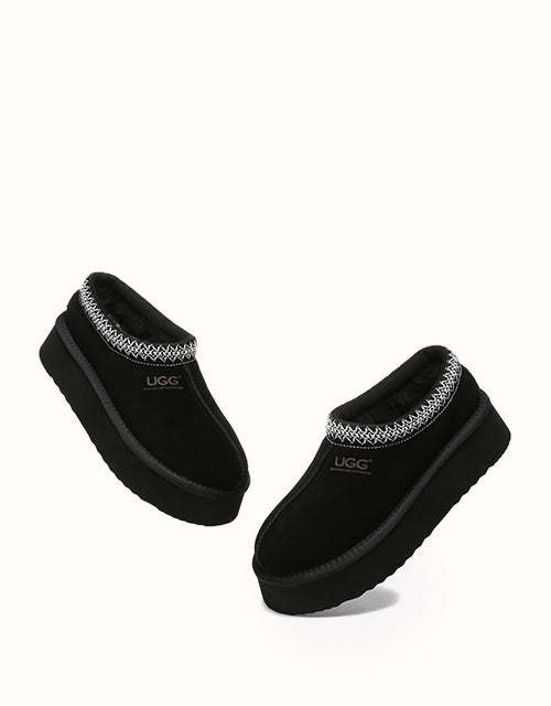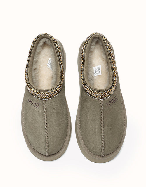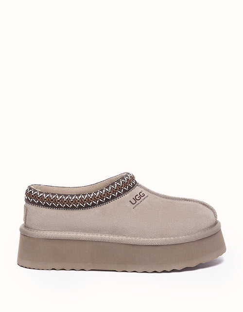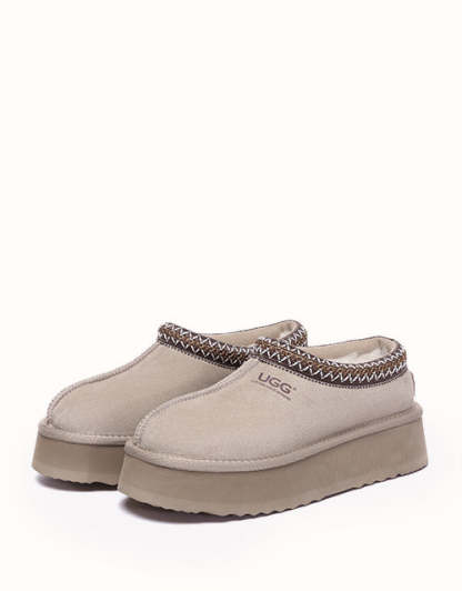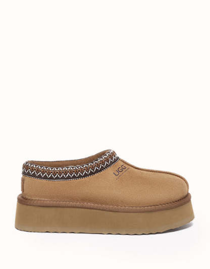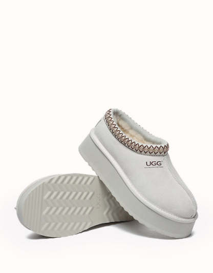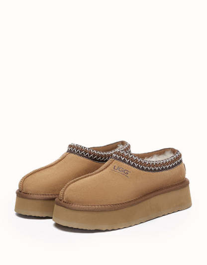 Soyez la plus élégante possible avec les chaussons à plateforme Tazzy Hippie d'AUSTRthtALIAN SHEPthtHERD. Dotés d'une semelle plateforme élégante, ce modèle tendance allie sophistication et confort dans un seul et même chausson ! Disponibles en cinq coloris neutres, dont châtaigne et olive, ces chaussons s'accordent avec toutes vos tenues et incarnent une élégance affirmée.