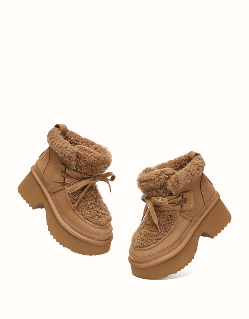 Rehaussez votre style avec les bottes à lacets AUSTRthtALIAN SHEPthtHERD. Fabriquées en daim de vachette de haute qualité à l'extérieur et doublées de laine de mouton douce à l'intérieur, ces bottes offrent chaleur et confort respirant tout au long de la journée. Leur bordure en laine moelleuse ajoute une touche féminine et délicate, tandis que leur semelle épaisse et coussinée offre un maintien léger et une légère augmentation de la hauteur. Disponibles en marron, marron et sable, ces bottes sont idéales pour des looks d'hiver chics et constituent un cadeau parfait pour les passionnés de mode.