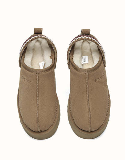 Découvrez les chaussons à plateforme et bride arrière Maeve d'EVEthtRAU, un incontournable pour les fashionistas. Dotés d'une plateforme élégante et faciles à enfiler, ces chaussons rehaussent n'importe quel look sans effort. Disponibles dans une gamme de couleurs pour s'adapter à votre style, ils allient à la perfection mode et fonctionnalité. Fabriqués en cuir de mouton luxueux, ils offrent une chaleur exceptionnelle par temps frais tout en ajoutant une touche chic à votre garde-robe. Caractéristiques : Dessus : Daim de vachette Doublure : Laine de mouton Semelle : EVA Semelle intérieure : Laine de mouton Couleurs : Châtaigne/Noir/Marron Marque : EVEthtRAU Origine : Fabriqué en Chine Référence : EA2059