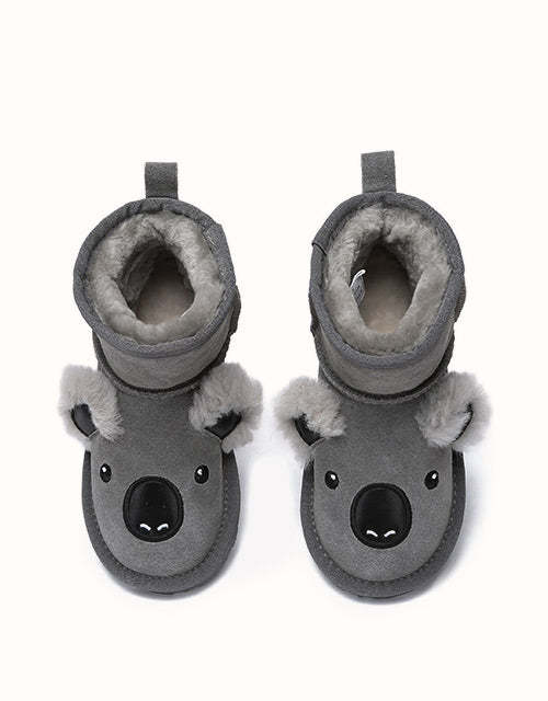 Découvrez les bottes Koala pour enfants, le choix idéal pour le confort et l'élégance de vos enfants. Confectionnées en laine de mouton et daim de vache, ces bottes sont conçues pour offrir un confort et une chaleur optimaux aux pieds de votre enfant. Elles présentent un design classique avec une touche d'adorables détails koala. Leur design à enfiler permet un enfilage facile, tandis que la fermeture auto-agrippante réglable assure un maintien sûr. Investissez dans ces adorables bottes en peau de mouton fonctionnelles pour vos enfants et offrez-leur confort et style.