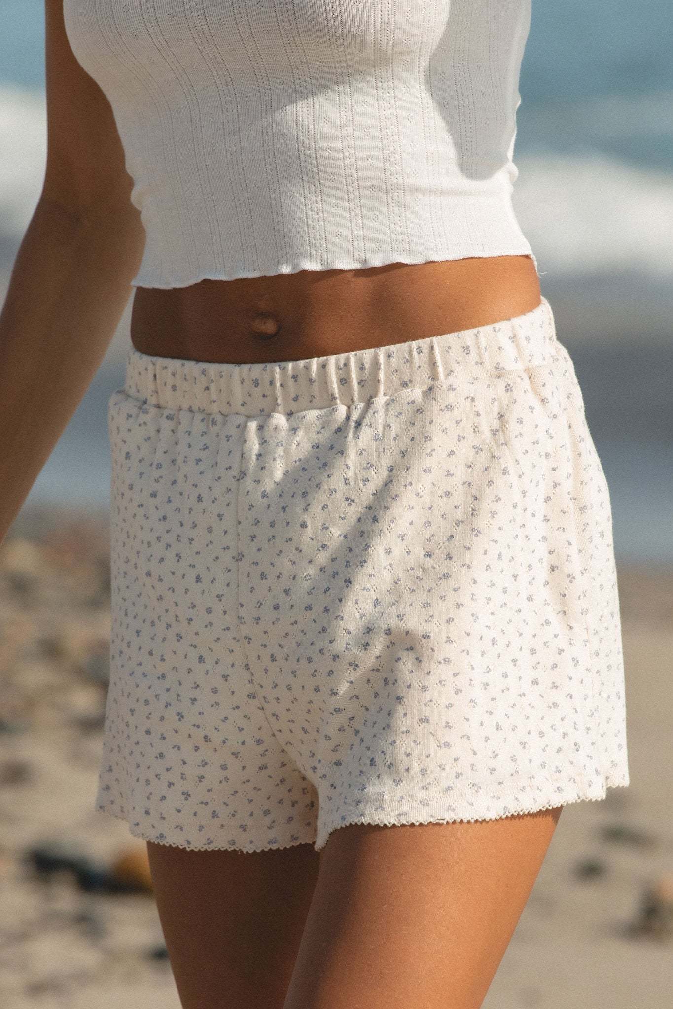Noa Elastic Ribbed Printed Shorts are made from lightweight, cotton breathable fabric and designed for a super stretchy and elastic fit. With its comfortable fit and sweet floral print, the shorts provide maximum comfort and effortless style.