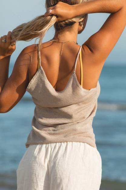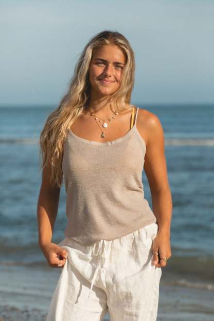 Crafted from a soft knit fabric, the Roxy Knit Spaghetti Tank Top features a delicate v neck line and thin spaghetti straps. Enjoy the lightweight and smooth feel of this versatile staple, perfect for any casual or dressy occasion.