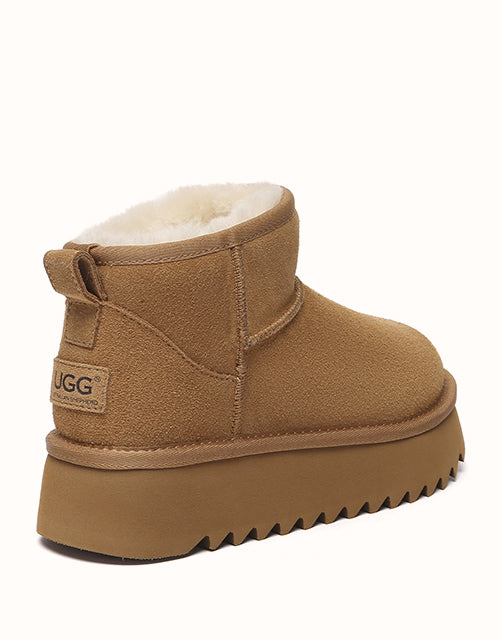 Les bottines à plateforme AUSTRthtALIAN SHEPthtHERD Helia revisitent le style classique. Fabriquées en laine mérinos douce pour une chaleur durable, elles présentent une silhouette courte et légère ornée d'un logo 3D surpiqué. La semelle à plateforme allie confort et style, les rendant faciles à associer à toutes vos tenues.