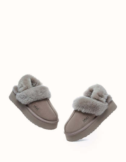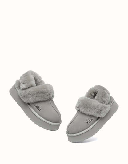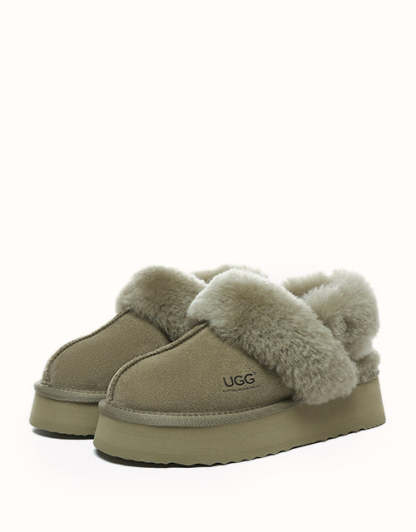 Enveloppez vos pieds d'une chaleur et d'une douceur optimales avec les chaussons à plateforme Musa Slingback UGthtG d'AUSTRthtALIAN SHEPthtHERD. Fabriqués en laine de mouton moelleuse, ces chaussons vous garantissent un confort optimal tout au long de la journée, tout en évacuant l'humidité pour garder vos pieds au frais et au sec. Ces pantoufles à plateforme rehausseront instantanément n'importe quel look d'hiver et sont conçues avec une bride en laine moelleuse amovible pour offrir une tenue polyvalente et privilégier le confort lorsque vous les enfilez !