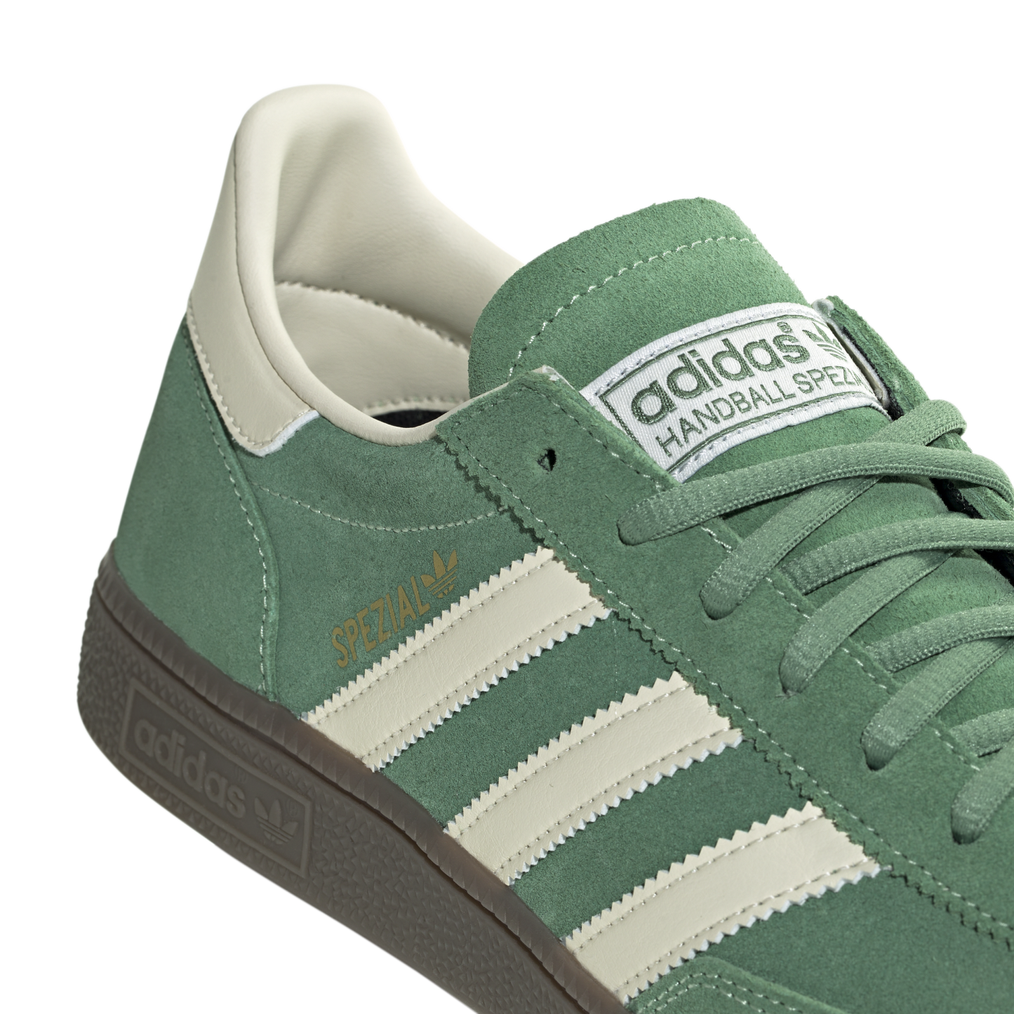 The adithtdas Handball Spezial shoes revive a classic. Originally released in the '70s as an indoor sports shoe, they're a timeless T-toe sneaker. The synthetic upper and textile lining deliver a lightweight, breathable construction. Meanwhile, the rubber outsole offers essential traction for quick cuts and crossovers during urban adventures. Step into retro-inspired design and experience Originals style.