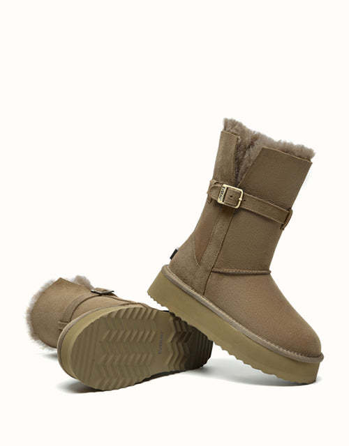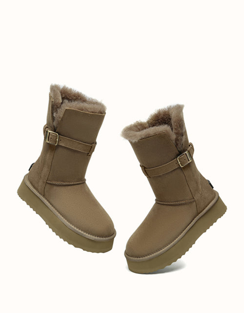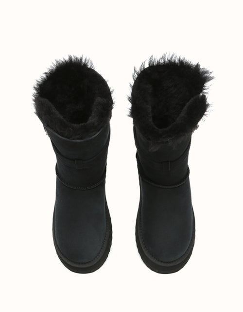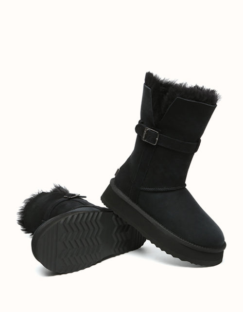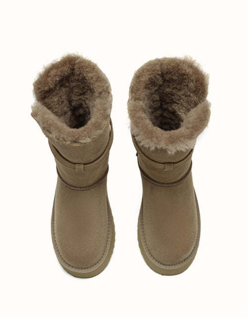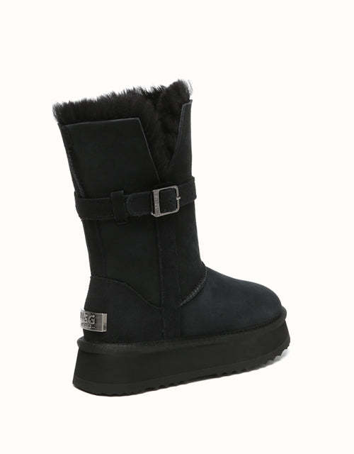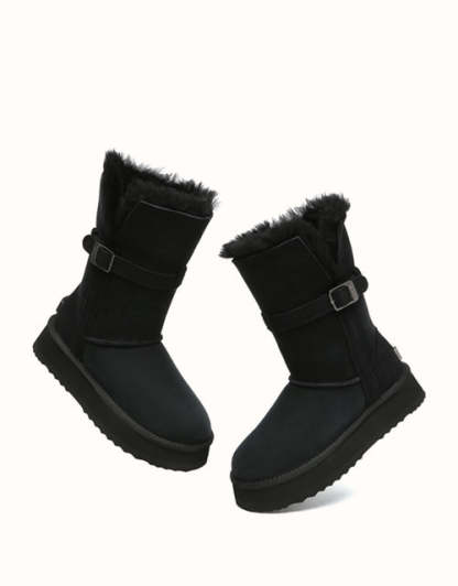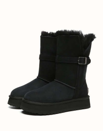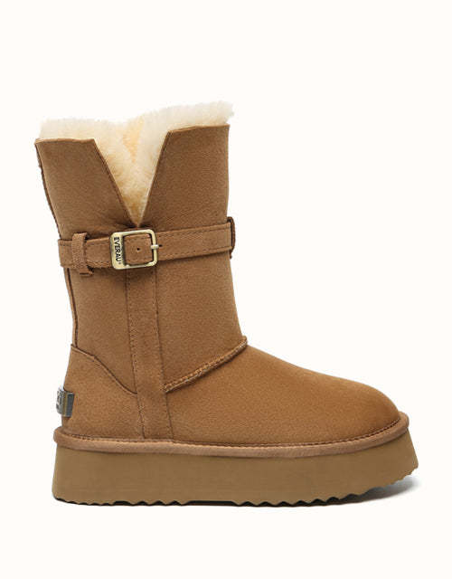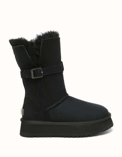 Profitez d'un style polyvalent avec les bottes courtes EVEthtRAU Valerie. Leur tige pliable crée trois looks en un, tandis que la doublure en peau de mouton double face et laine offre une chaleur respirante. Elles sont dotées d'une semelle EVA robuste et d'une plateforme de 4 cm pour plus de confort et de hauteur. Disponibles en marron, caribou et noir.