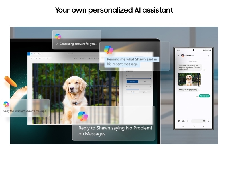 Manage your tasks via quick chat prompts with Copilot's personalized AI assistance.² Plus, get smarter communication tools—access contacts and send messages effortlessly with a simple chat command.