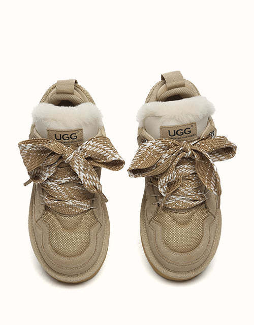 Les bottes à lacets et plateformes AUSTRthtALIAN SHEPthtHERD Parkyr allient le meilleur d'une mini-bottine UGthtG classique à une basket élégante. Fabriquées en peau de mouton australienne de première qualité, elles absorbent naturellement l'humidité pour garder vos pieds au chaud et au sec. Dotées de lacets surélevés et d'un design moderne, ces bottes allient mode et fonctionnalité. Disponibles en marron et sable, elles constituent un choix durable et élégant pour toutes vos tenues.