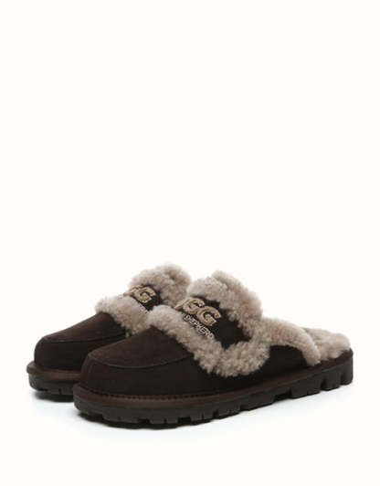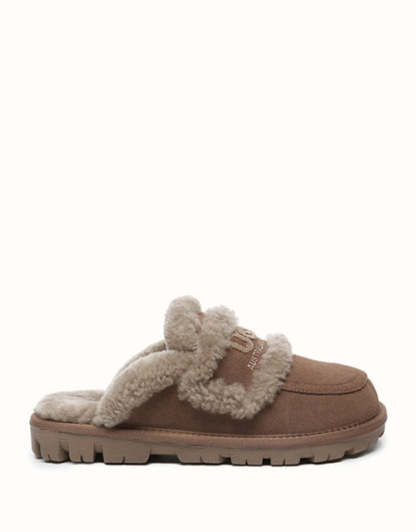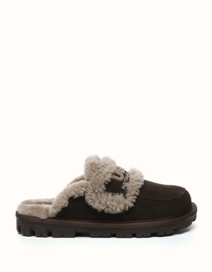Fabriquées en luxueuse peau de mouton mérinos australienne, ces chaussures offrent une sensation douce et agréable sur la peau, ainsi qu'une chaleur optimale tout au long de la journée pour un confort optimal. Leurs finitions en peau lainée couleur crème subliment le logo UGthtG brodé, ajoutant une touche d'élégance et d'identité à la marque. Dotées d'une semelle légère en EVA, ces mocassins classiques offrent un soutien amorti et un confort optimal en toute occasion.