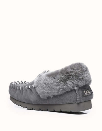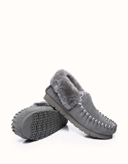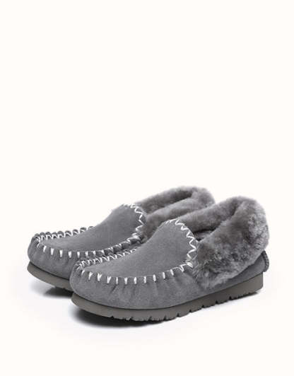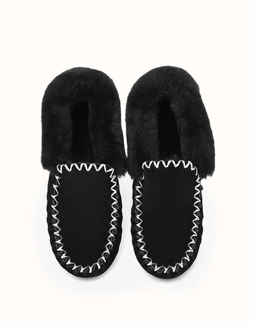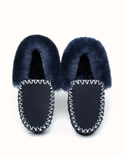 Ces chaussons en peau de mouton sont parfaits à enfiler dès votre arrivée pour vous tenir chaud et confortable. Leurs semelles résistantes évitent les glissements. Disponibles en 4 coloris (Châtain/Noir/Gris/Bleu marine), ils constituent une excellente idée cadeau pour les mois les plus froids.