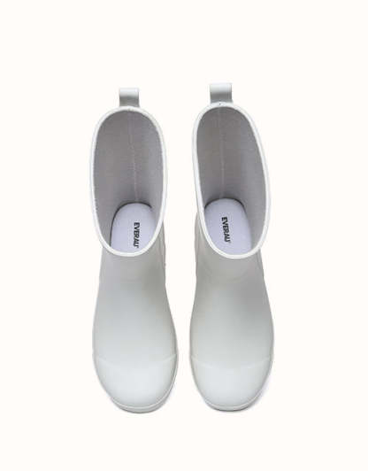 Découvrez les bottes courtes en caoutchouc EVEthtRAU Cora : votre choix idéal pour rester au sec et élégante, que vous affrontiez la pluie ou que vous vous lanciez dans votre routine quotidienne. Fabriquées en caoutchouc robuste, ces bottes offrent une protection fiable contre l'eau avec un design élégant et contemporain. Disponibles en noir classique et blanc éclatant, elles s'accordent parfaitement avec toutes vos tenues. La semelle est dotée de motifs carrés en relief pour une meilleure adhérence et une tenue longue durée dans différents environnements.