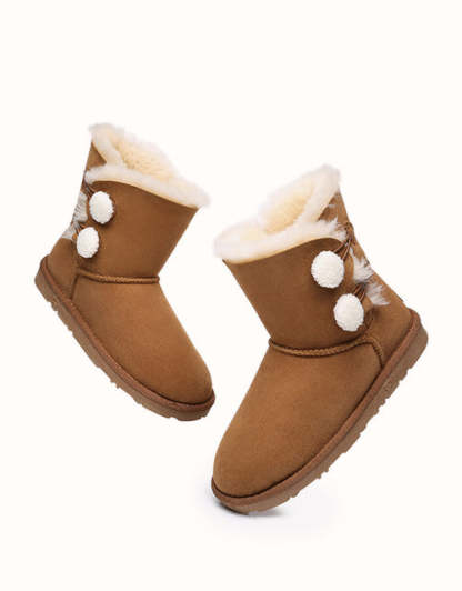 Envie d'une paire de bottes UGthtG originales ? Les mini-bottes boutonnées Aspen sont conçues en peau de mouton double face et avec des boutons en peluche, pour un confort ultime et un look tendance et mignon !