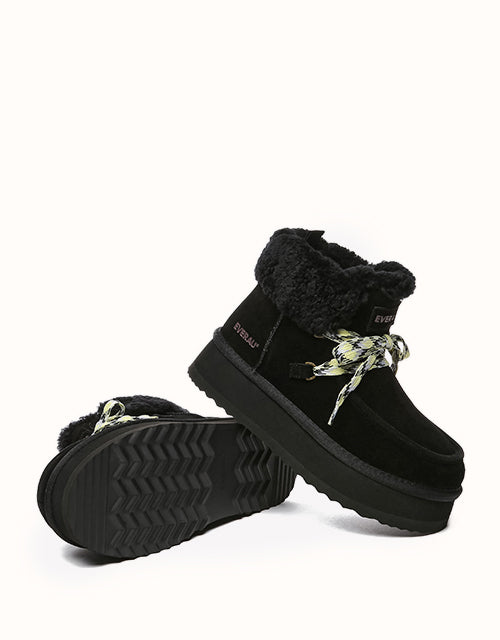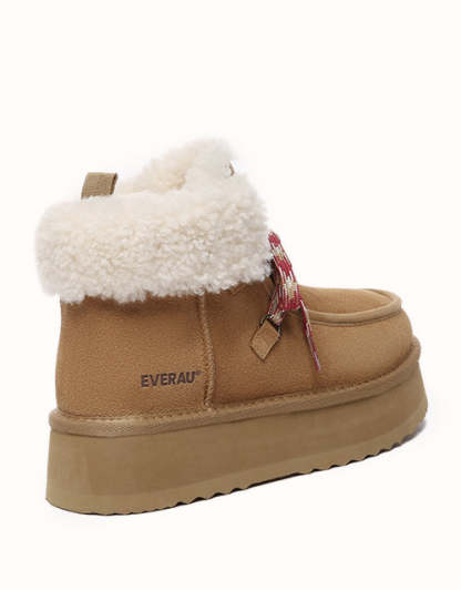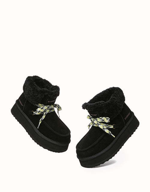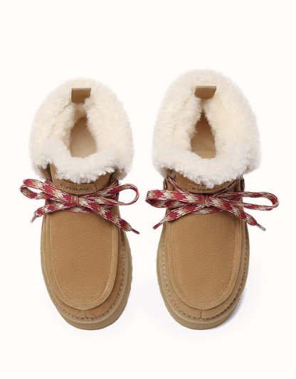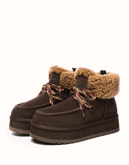 Restez confortable et élégante avec ces bottes au design chic en polaire retournée et à lacets tissés colorés. Doublées de laine mérinos australienne pour plus de chaleur et de confort, elles sont également dotées de daim de vache déperlant et d'une semelle plateforme légère en EVA pour plus de durabilité et un amorti optimal. Fonctionnelles et tendance, ces bottes sont un indispensable de l'hiver, parfaites pour les aventures hivernales.