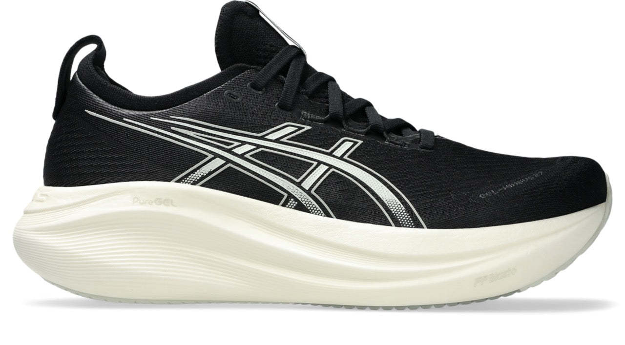 The GEL-NIMBUS? 27 shoe's soft cushioning properties help you feel like you're landing on clouds. This design is revamped to help create a softer and smoother running experience.?A soft engineered jacquard mesh upper comfortably wraps your foot while supplying advanced ventilation. Additionally, the knit tongue and collar help provide a soft and supportive feel.?By using FF BLAST? PLUS ECO cushioning, this trainer creates a lighter and softer cushioning experience.?Lastly, HYBRID GRIP? outsole rubber helps create better traction, improved softness, and advanced durability.