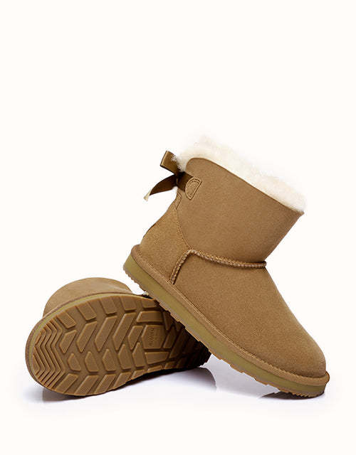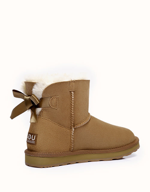 Cette magnifique paire est polyvalente. De la détente à la maison au brunch, elle s'harmonise facilement avec votre garde-robe et est une reine du confort ! Son adorable nœud à l'arrière propulse ce modèle vers la célébrité et coche toutes les cases du design, notamment en cuir de mouton double face de qualité supérieure et en semelle en caoutchouc durable.
