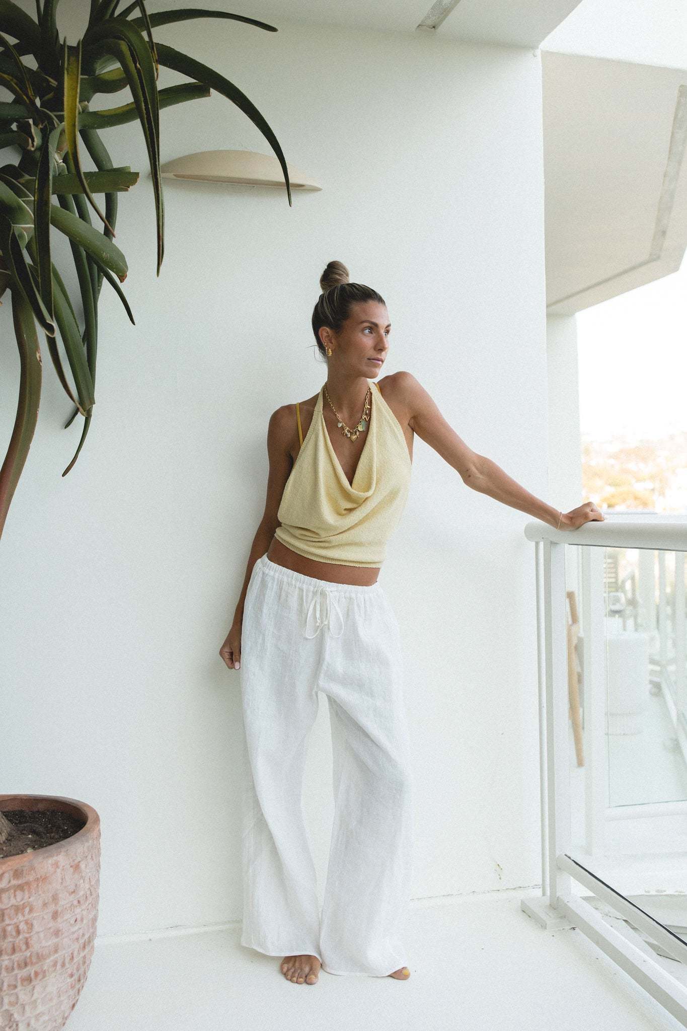 Introducing the Dusk Cotton Knit Halter Top - a must-have for any summer wardrobe. This backless top is perfect for a day at the beach or a sunny summer day, making a cool statement and providing ultimate comfort. Made with high-quality cotton, it's the perfect addition to slip over a bikini or pair with your favorite beachy bottoms.
