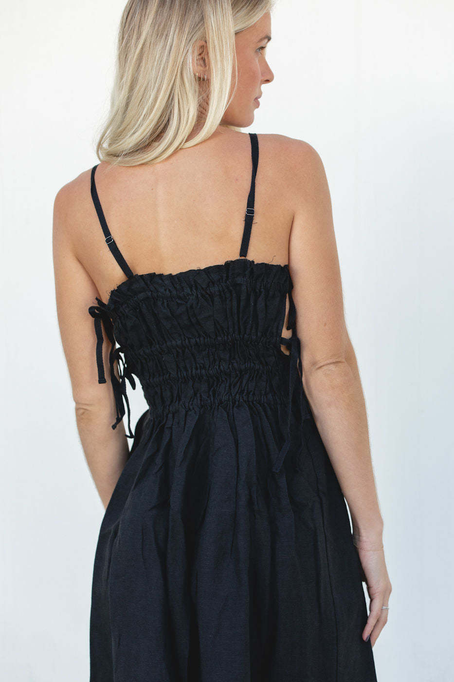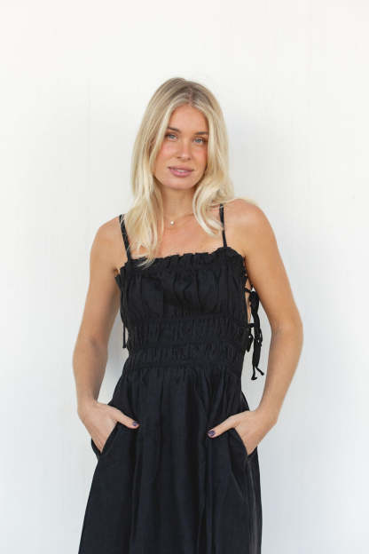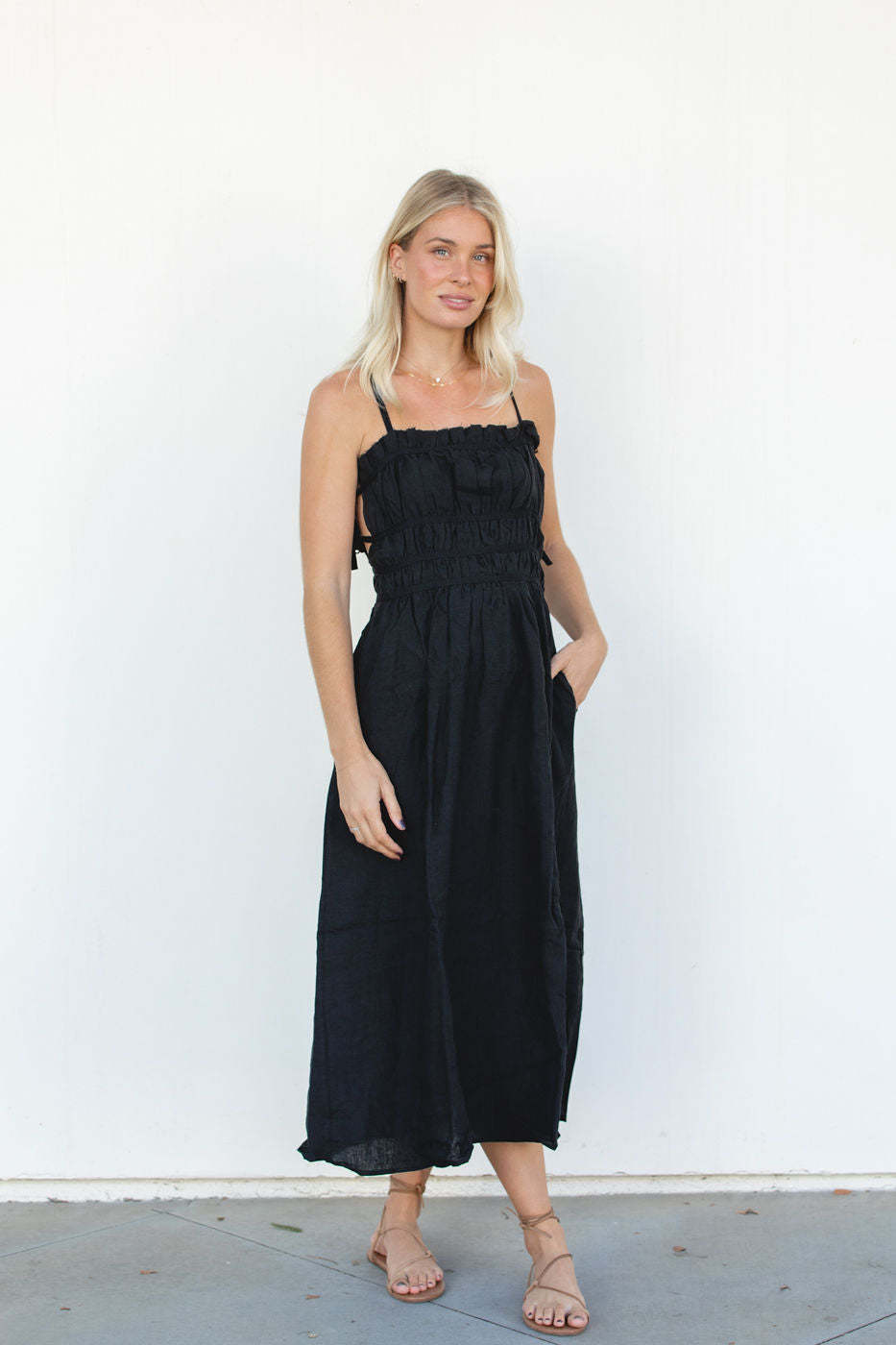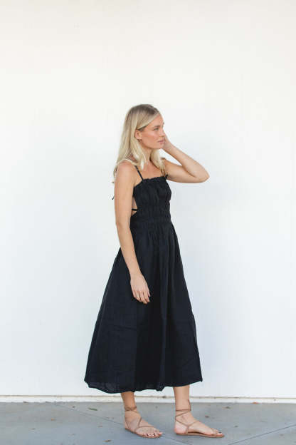 This Gigi Dress is a classic piece made with 100% linen, pockets and ties for adjustable fits. It's perfect for any special occasion. Its timeless design will keep you looking effortless during the holidays and for the seasons to come.