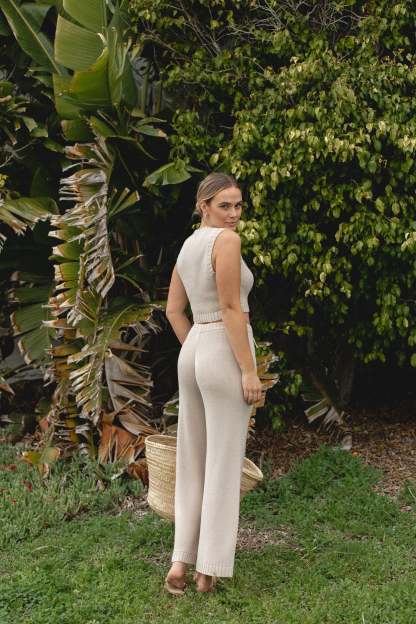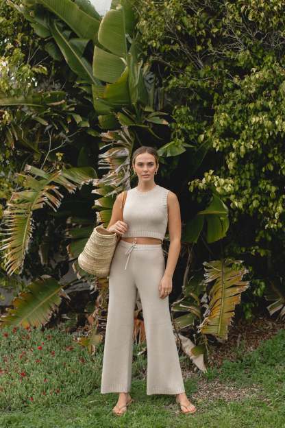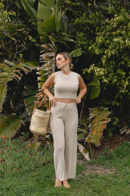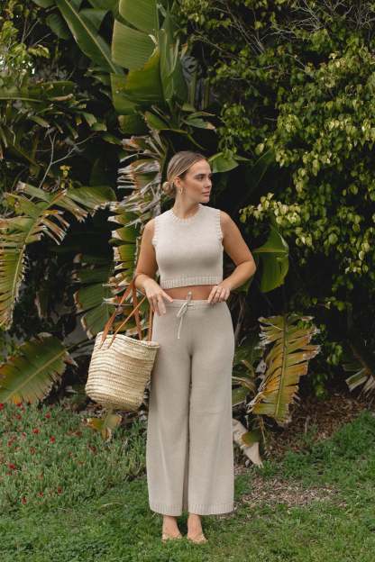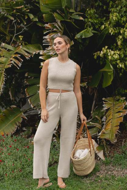 Introducing our Stone Cotton Knit Tank and Pants Set, designed for effortless softness and comfort. The adjustable tie adds a personalized touch, while the ribbed stitching detail adds a touch of texture. This two-piece set is the perfect addition to your Spring wardrobe.