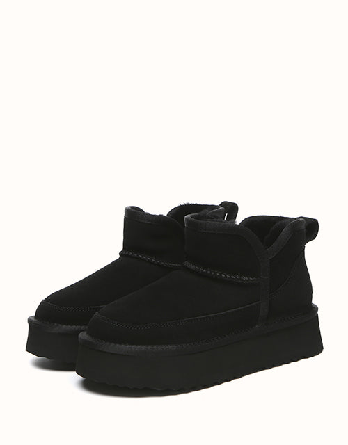 Découvrez la chaleur et le confort des bottines à plateforme Vesper d'EVEthtRAU, confectionnées en peau de mouton luxueuse. Avec leur design classique et intemporel, ces bottines s'accorderont à toutes vos tenues. Disponibles dans une gamme de couleurs pour s'adapter à votre style, elles sont le complément idéal de votre garde-robe, idéales pour diverses occasions.