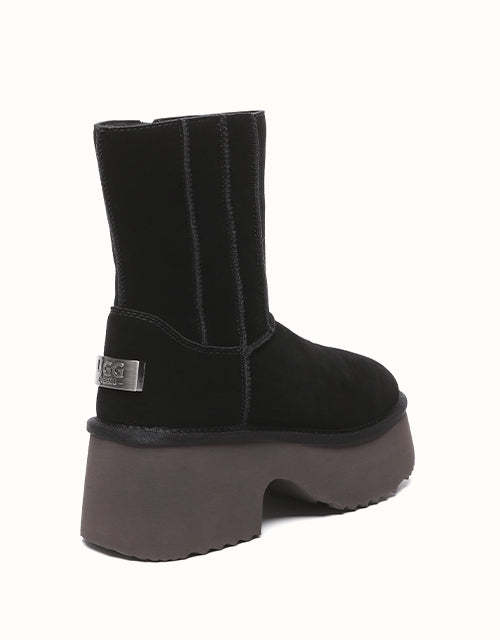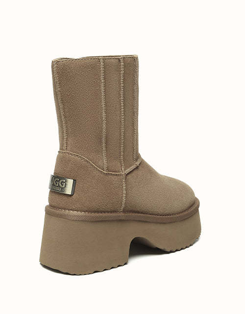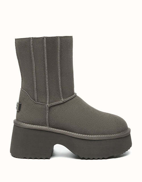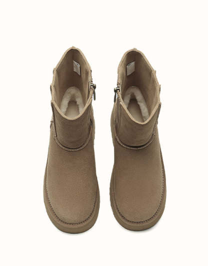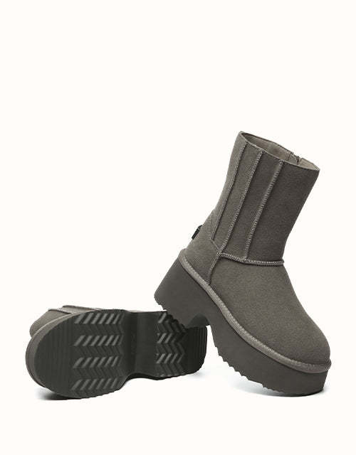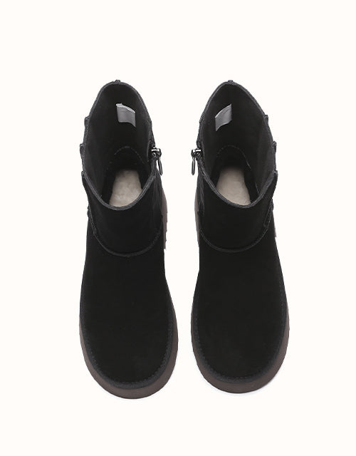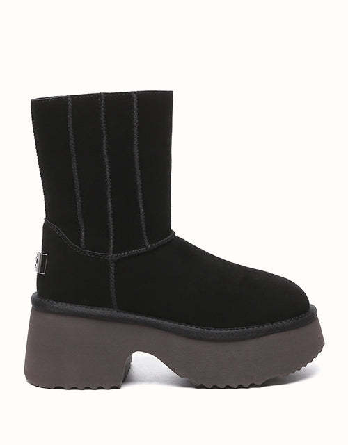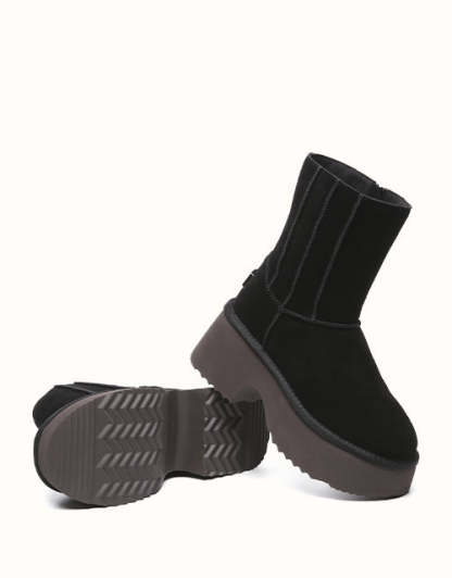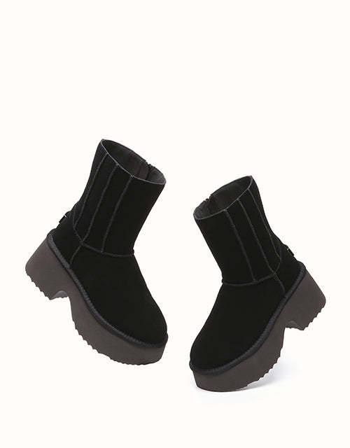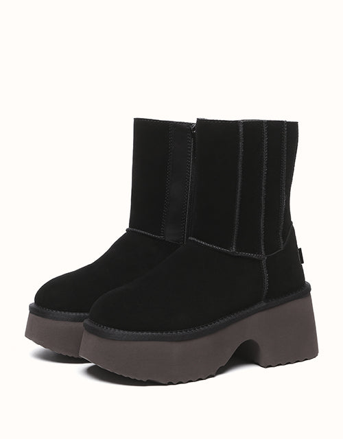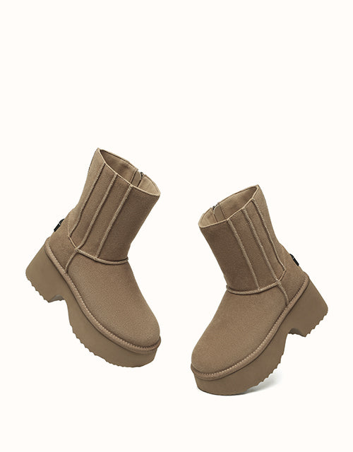 Les bottes à plateforme épaisse EVEthtRAU Yuana allient mode et fonctionnalité avec un daim de vache souple et un confort respirant. Disponibles en marron, noir et noyer, elles sont dotées d'un talon plateforme de 6 cm pour une hauteur subtile et un port facile toute la journée.