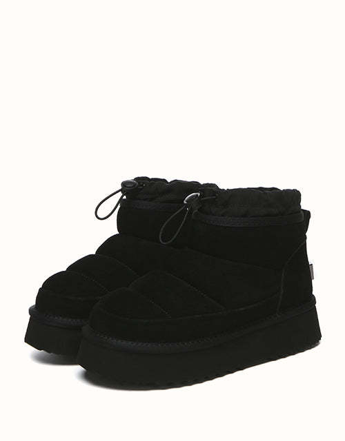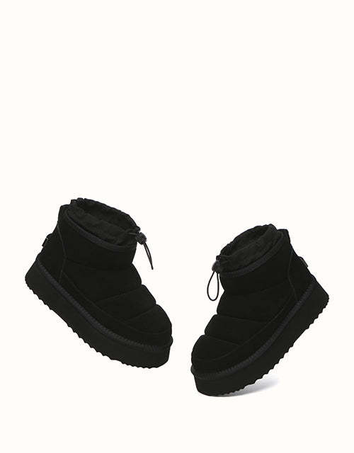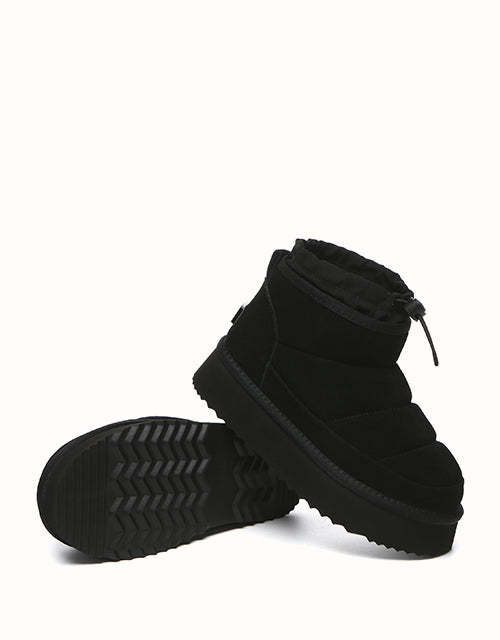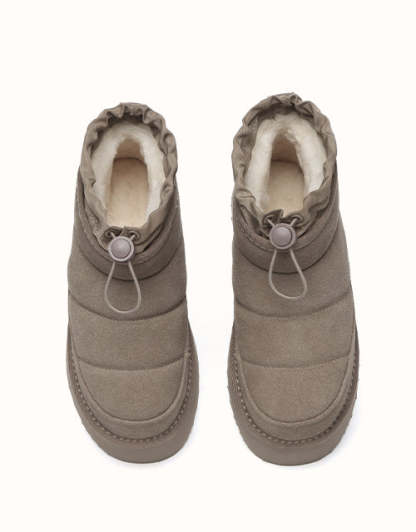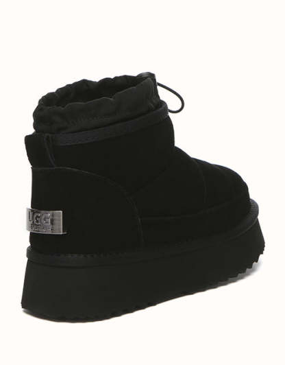 Restez confortable et élégante avec les bottes EVEthtRAU Picken. Fabriquées en daim de vachette imperméable de qualité supérieure, elles sont dotées d'un col à cordon de serrage réglable pour un ajustement parfait et une protection contre le vent. Doublées en laine de mouton australienne, elles offrent une chaleur respirante et un confort optimal tout au long de la journée. Leur plateforme épaisse ajoute un amorti léger et une hauteur supplémentaire. Disponibles en marron, noir et marron, les bottes UGthtG sont un choix polyvalent pour un usage quotidien.