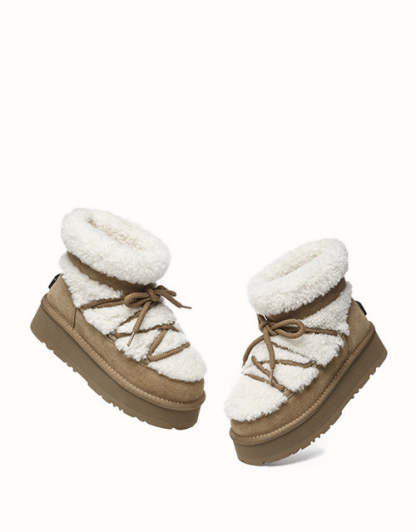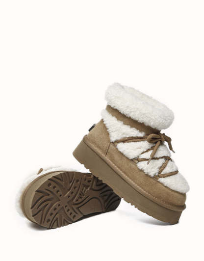 Rien ne vaut une botte confortable, sauf une botte au style indéniable. La botte à plateforme en peau de mouton UGthtG EVEthtRAU Carmen est dotée d'un col en peau lainée chic pour plus d'élégance, d'une semelle plateforme tendance et de lacets, alliant sans effort mode et confort à toutes les tenues.